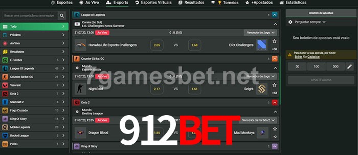 O 912Bet oferece uma grande seleção de opções de apostas em e-sports com probabilidades competitivas
